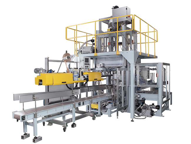 針對農化、食品等行業粉狀物料包裝而研制的新型包裝機組。該機組具有自動供袋、上袋、填充、送包、封口等功能。可與各類粉體物料設備聯動工作,實現大規格包裝無人化生產作業。液晶觸摸屏控制(可達到IP65以上等級防水、防塵,可適應潮濕,多塵的工作環境)、人機界面更加良好,故障自動診斷、安全停機保護、調整維護方便快捷。完全遏制粉塵。